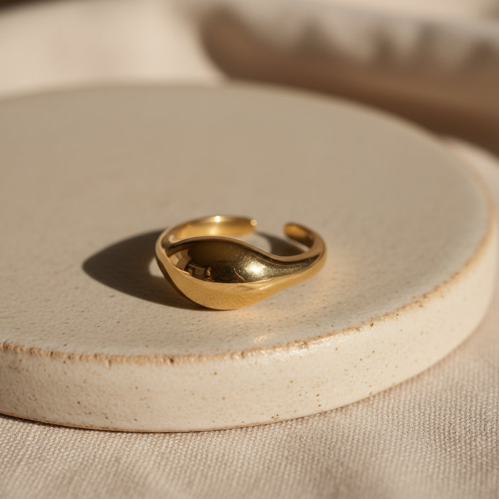 Der Dana Ring besticht durch seine klare Form und den dezenten Glanz, der jedem Outfit eine elegante Note verleiht. Mit seiner leicht gewölbten Oberfläche strahlt er zeitlose Ruhe und zugleich moderne Stärke aus - ein Schmuckstück, das sowohl solo als auch in Kombination getragen werden kann.