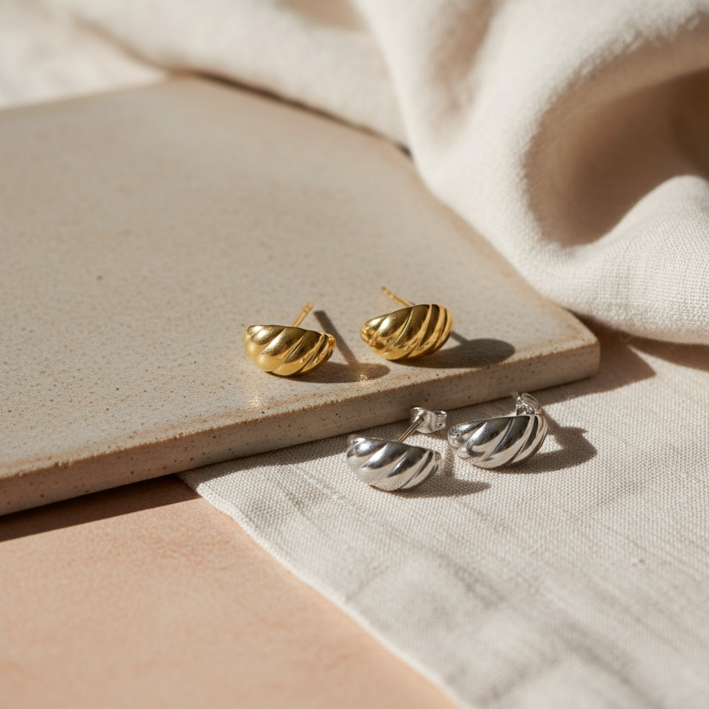 Diese goldfarbenen Ohrstecker greifen die Form einer zarten Muschel auf und bringen so ein Stück Natürlichkeit und Leichtigkeit in Deinen Schmuckstil. Mit ihren sanft geschwungenen Linien und dem edlen Glanz erinnern sie an Sonne, Strand und Meer - ein Hauch von Urlaub für jeden Tag.