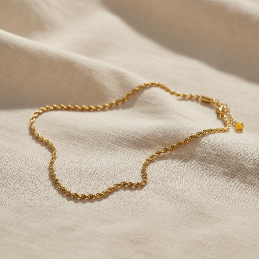 Die Lea Kette in goldfarbener Kordeloptik besticht durch ihr zeitloses Design und die feine Flechtstruktur, die im Licht elegant schimmert. Sie ist schlicht genug, um solo getragen zu werden, und zugleich die perfekte Basis für einen unserer Anhänger oder als Ergänzung zu weiteren Ketten im Layering-Stil.