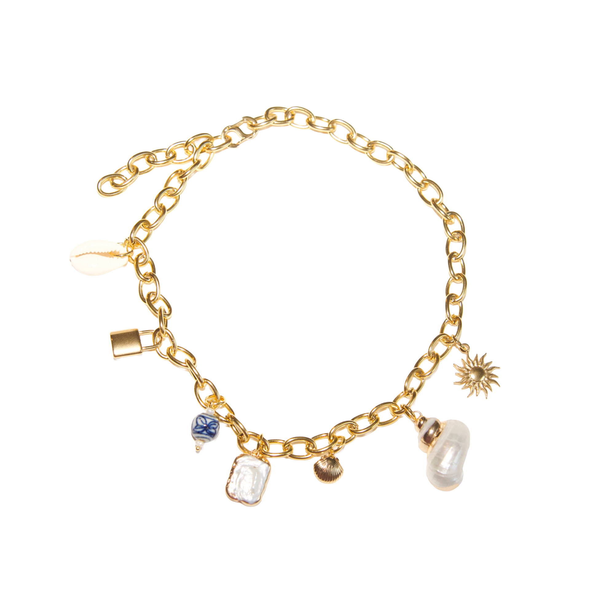 Unsere Lene Kette vereint spielerische Leichtigkeit mit stilvollen Statement-Details. Die markante Gliederkette wird durch verschiedene Anhänger - von Süßwasserperlen bis hin zu kleinen Symbolen - zu einem besonderen Statement-Piece, das Geschichten erzählt und jedem Outfit eine individuelle Note verleiht.