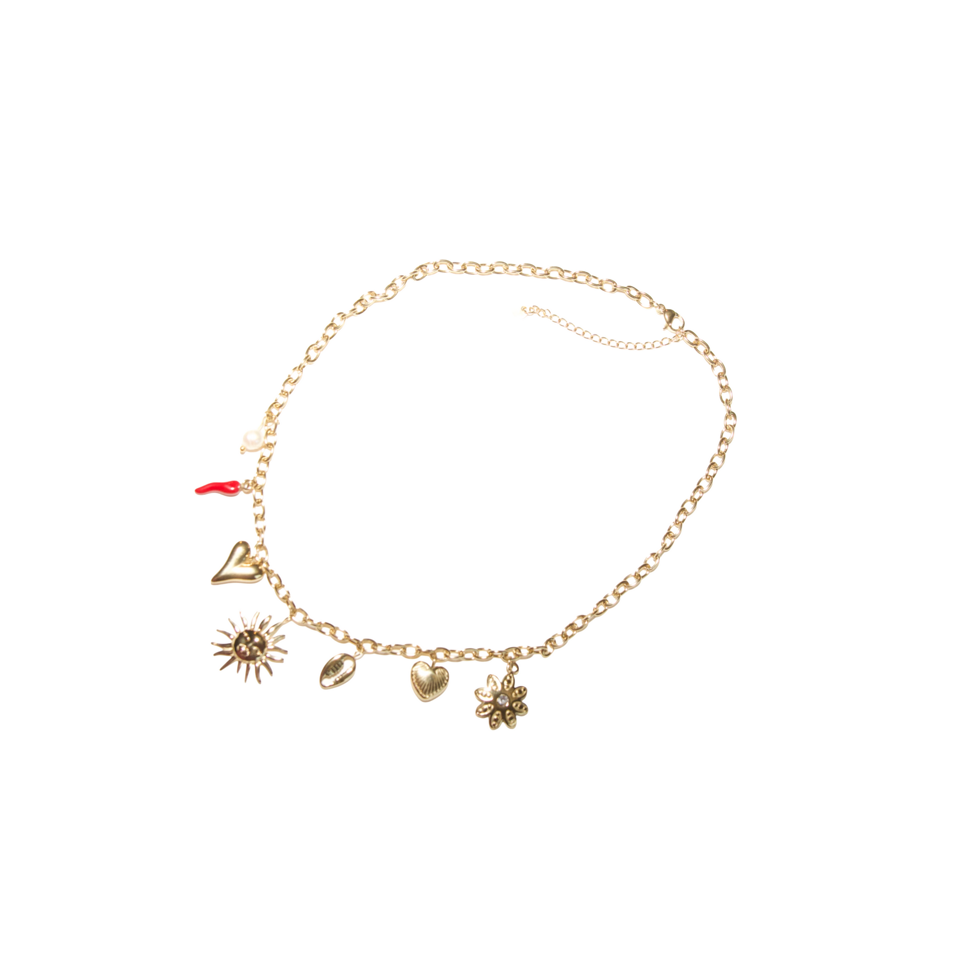 Unsere Inga Kette vereint verschiedene Symbole, die zusammen ein einzigartiges Statement ergeben - von Herz bis Sonne, von Blume bis Muschel. Jeder Charm erzählt seine eigene kleine Geschichte und macht Inga zu einem echten Blickfang.